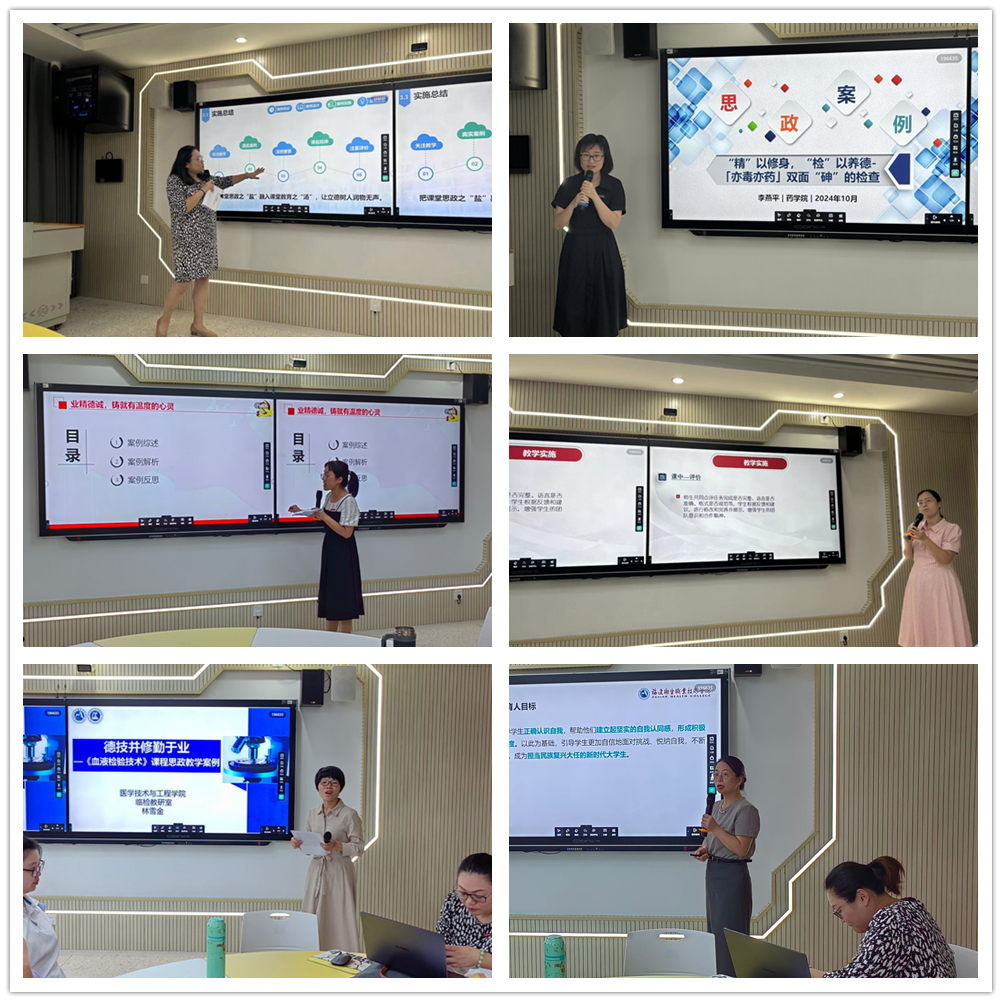 活動(dòng)中,來(lái)自護(hù)理學(xué)院、藥學(xué)院、醫(yī)學(xué)院、醫(yī)工學(xué)院、健康學(xué)院與人文教學(xué)部的教師代表分別分享了他們將校園文化、中醫(yī)藥衛(wèi)生和校史等元素融入教學(xué)的設(shè)計(jì)思路、實(shí)施過(guò)程與評(píng)價(jià)反思,不僅展示了各教學(xué)團(tuán)隊(duì)豐富多彩的教學(xué)實(shí)踐成果,也為與會(huì)教師開(kāi)展課程思政提供了寶貴經(jīng)驗(yàn)。