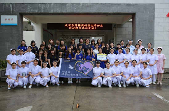 雙方院校師生在護(hù)理系門(mén)口合影