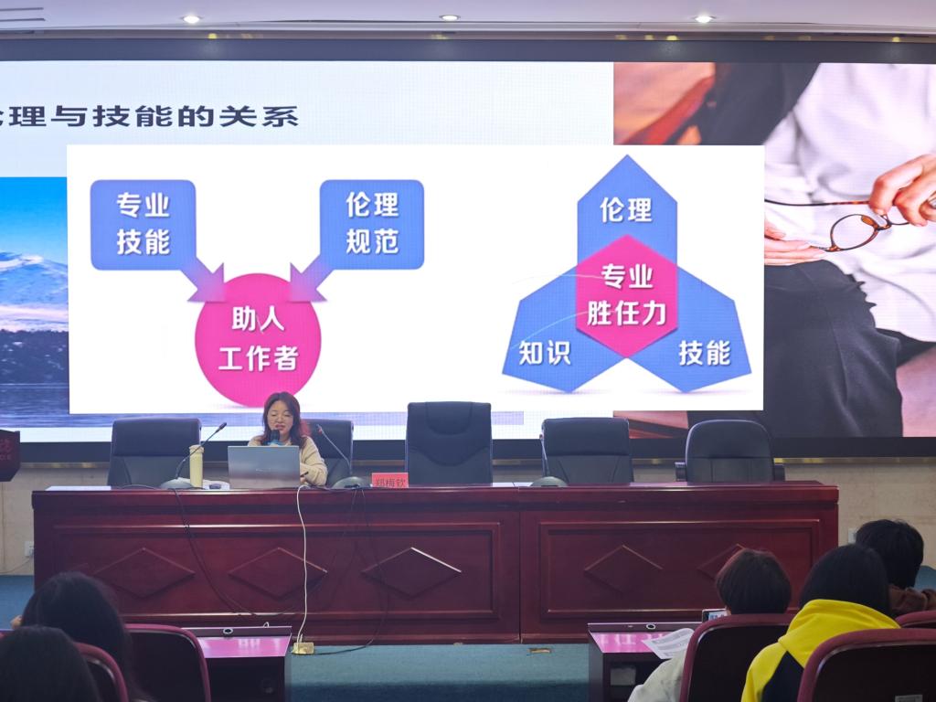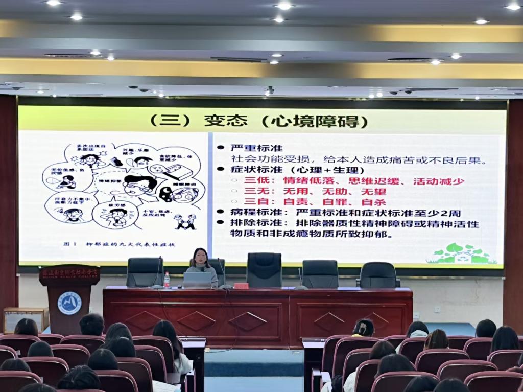 余彩云老師憑借豐富的工作經(jīng)驗為大家開展《大學(xué)生心理問題的初步鑒別》主題授課。她通過生動具體的案例分析,向同學(xué)們傳授了大學(xué)生常見心理問題的識別與初步干預(yù)的策略,積極與學(xué)生進行互動交流,為他們在實際工作中提供有力的指導(dǎo)。