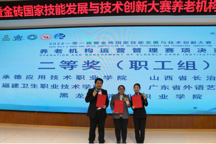 近日,2024“一帶一路”暨金磚國家技能發(fā)展與技術(shù)創(chuàng)新大賽(簡稱“金磚大賽”)首屆健康照護(hù)職業(yè)技能(老年方向)賽項(xiàng)和養(yǎng)老機(jī)構(gòu)運(yùn)營管理賽項(xiàng)分別在山東和貴州落下帷幕,我校老年保健與管理專業(yè)師生參加兩個(gè)賽項(xiàng)的比賽,取得良好成績。