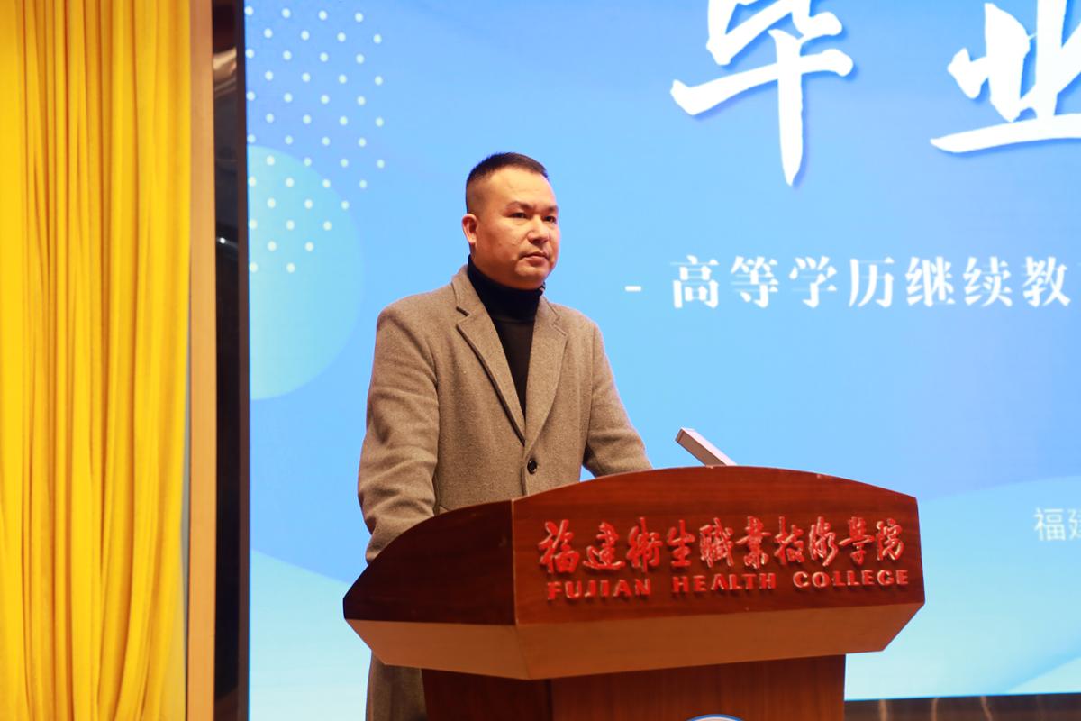 12月27日,我校隆重舉行高等學歷繼續(xù)教育2025屆學生畢業(yè)典禮。副校長周雄,繼續(xù)教育學院、護理學院、藥學院、醫(yī)學院、醫(yī)學技術(shù)與工程學院相關(guān)領(lǐng)導老師,畢業(yè)班班主任以及部分2025屆畢業(yè)生參加,1100多名外地畢業(yè)生收看線上直播。畢業(yè)典禮由繼續(xù)教育學院副院長林麗鳳主持。