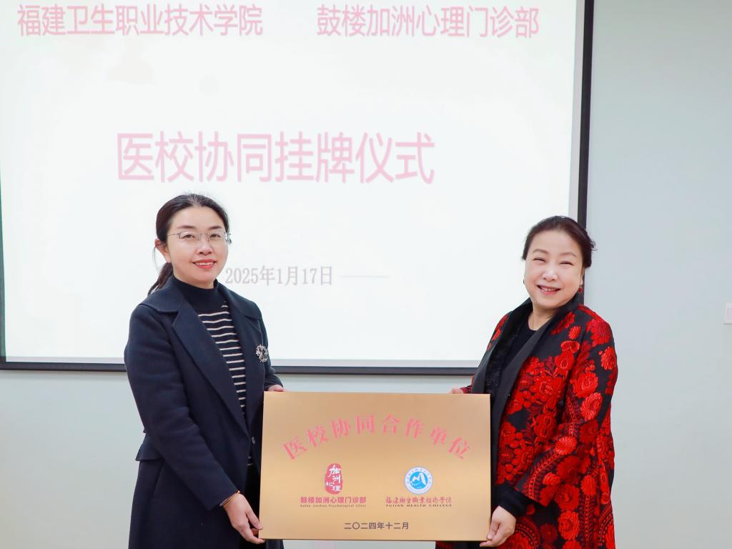 為增強我校心理教育工作的專業(yè)性、實效性和服務(wù)性,提升心理育人質(zhì)量。1月17日,我校與鼓樓加洲心理門診部舉行心理健康服務(wù)醫(yī)校協(xié)同授牌儀式。副校長黃銘珊、加洲心理門診部總督導(dǎo)林芳、心理健康教育中心主任龔海蓉及雙方教師代表、醫(yī)生代表參加活動。