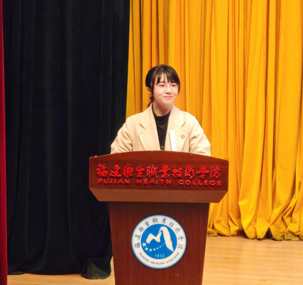 2025級醫(yī)學檢驗專業(yè)學生蔡惠超作為新生代表發(fā)言。他回顧了中專階段在母校打下的專業(yè)基礎,并呼吁全體新生既要深耕醫(yī)學理論知識,更要錘煉實踐操作能力,在協(xié)同共進中傳承醫(yī)者仁心。