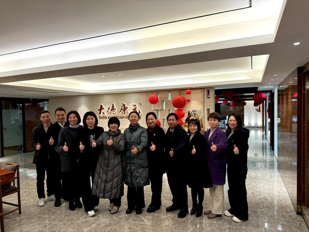 在大德康元(福建)藥業(yè)有限公司,黃銘珊對企業(yè)的發(fā)展現狀、崗位人才需求、企業(yè)運營模式等情況進行深入了解,參觀了企業(yè)部分門店和中醫(yī)館,并就藥學、中藥學、藥品經營與管理等專業(yè)人才培養(yǎng)情況和企業(yè)相關人員開展座談交流,要求藥學院將醫(yī)藥企業(yè)崗位技能最新要求融入課程建設,進一步優(yōu)化人才培養(yǎng)方案,提升人才培養(yǎng)質量。