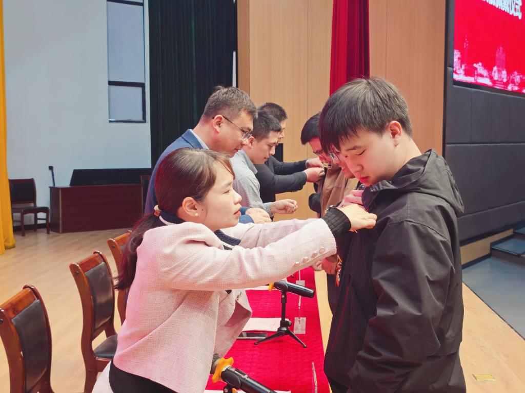 在莊重而熱烈的氛圍中,與會(huì)領(lǐng)導(dǎo)為新生代表佩戴中國(guó)藥科大學(xué)?;铡_@一神圣的時(shí)刻象征著新生們正式成為中國(guó)藥科大學(xué)大家庭中的一員,也標(biāo)志著他們即將開(kāi)啟一段嶄新的學(xué)習(xí)旅程,肩負(fù)起為我國(guó)醫(yī)藥事業(yè)培養(yǎng)優(yōu)秀人才的重任。隨后,在沙雷的帶領(lǐng)下,全體新生莊嚴(yán)宣讀藥學(xué)生誓詞,他們洪亮而堅(jiān)定的聲音表達(dá)了對(duì)醫(yī)藥事業(yè)的熱愛(ài)和對(duì)未來(lái)的堅(jiān)定信念,也展現(xiàn)了新時(shí)代藥學(xué)學(xué)子的青春風(fēng)采和責(zé)任擔(dān)當(dāng)。