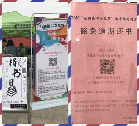 讀者協(xié)會在捐書區(qū)號召并接收全院師生捐贈的圖書,更有“讀書福利周”——全部歸還超期圖書可豁免罰款、圖書漂流等活動。