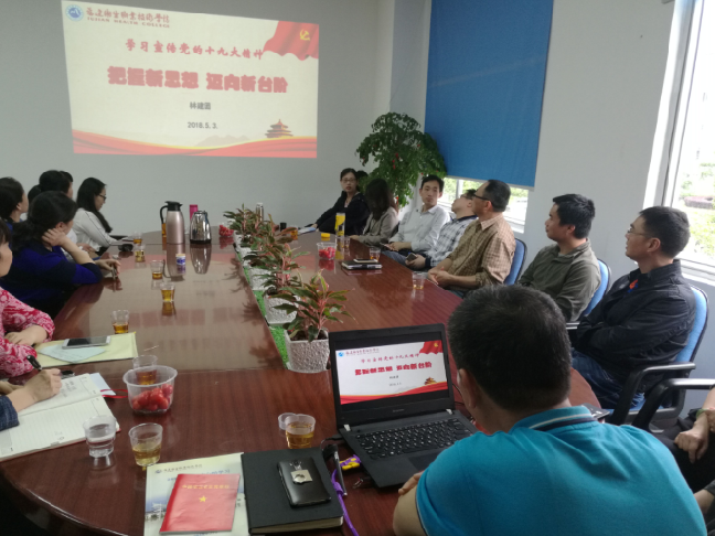 接著,學(xué)院黨委林建團(tuán)副書(shū)記應(yīng)邀為各位農(nóng)工黨員同志做了題為《把握新思想 邁向新臺(tái)階》學(xué)習(xí)宣傳黨的十九大精神專題講座。林建團(tuán)副書(shū)記首先帶領(lǐng)大家學(xué)習(xí)了十九大召開(kāi)的意義及成果,然后詳細(xì)解析了習(xí)近平新時(shí)代中國(guó)特色社會(huì)主義思想產(chǎn)生的背景及主要內(nèi)容,最后林建團(tuán)副書(shū)記對(duì)學(xué)院農(nóng)工黨支部提出了三點(diǎn)希望:一是要加強(qiáng)學(xué)習(xí),做到思想建設(shè)有新高度。全體農(nóng)工黨黨員要認(rèn)真學(xué)習(xí)宣傳貫徹習(xí)近平新時(shí)代中國(guó)特色社會(huì)主義思想,深刻領(lǐng)會(huì)、準(zhǔn)確把握十九大主題,不忘初心,牢記使命,在大是大非問(wèn)題上,保持清醒的政治立場(chǎng)和政治覺(jué)悟。二是要認(rèn)真履職,做到服務(wù)發(fā)展有新作為。農(nóng)工黨學(xué)院支部要發(fā)揮自身的人才薈萃、智力密集、聯(lián)系廣泛的優(yōu)勢(shì),緊密圍繞服務(wù)號(hào)“立德樹(shù)人”這個(gè)根本任務(wù),在教學(xué)、科研和管理中充分發(fā)揮自身優(yōu)勢(shì)和作用,做到立足崗位,再創(chuàng)佳績(jī)。三是要夯實(shí)基礎(chǔ),做到自身建設(shè)有新局面。農(nóng)工黨學(xué)院支部要加強(qiáng)組織建設(shè),制度建設(shè)和載體建設(shè),在履行好中國(guó)特色社會(huì)主義參政黨職能上下功夫,把支部建設(shè)成為一個(gè)有思想、有活力的組織。
