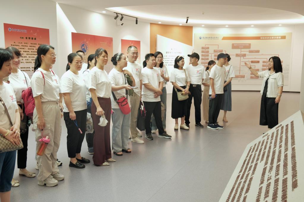 隨后,校友們走進(jìn)校史館,一邊聽著講解員講述學(xué)校百年的滄桑巨變和輝煌歷程,一邊重溫著道山路老校區(qū)教學(xué)樓、宿舍樓那些學(xué)習(xí)和生活的點滴。泛黃的記憶與鮮活的校史交疊,在每個人心中泛起溫柔的漣漪。