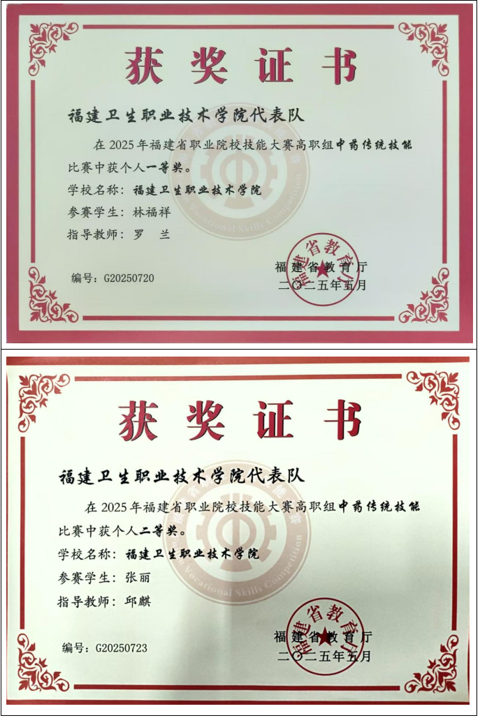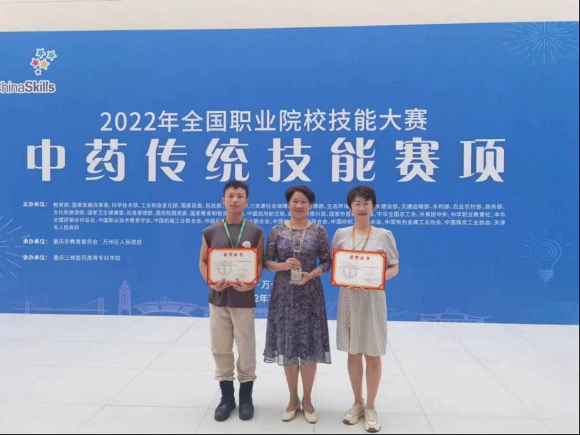 中藥學子在2022年全國職業(yè)院校技能大賽高職組中藥傳統(tǒng)技能賽項比賽中榮獲個人一等獎