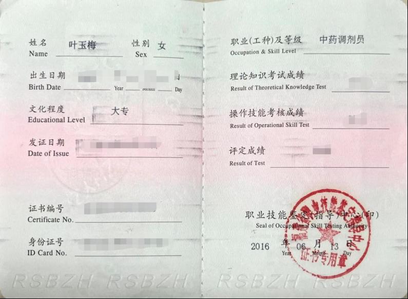 中藥調劑員證書