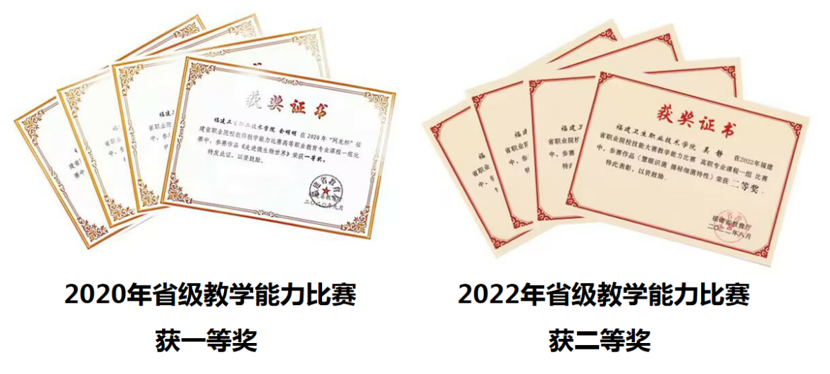專任教師在2020年省級教學能力比賽中獲團體一等獎、2022年省級教學能力比賽中獲團體二等獎。