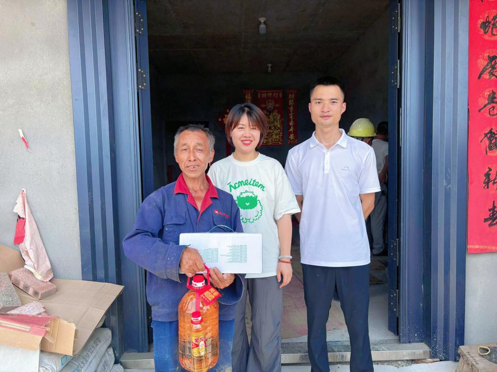 畬村受災(zāi)脫貧戶家中,醫(yī)學(xué)院黨委副書記劉明珠帶隊(duì),實(shí)地走訪了四戶脫貧戶,為他們送去牛奶、食用油等生活物資。同時(shí)在村民家中進(jìn)行福建助學(xué)政策宣講,詳細(xì)介紹了助學(xué)貸款的申請(qǐng)條件、流程及還款政策,助力村民更好地了解和利用教育資助渠道。這次親切的入戶交流,拉近了實(shí)踐隊(duì)與村民們之間的距離,進(jìn)一步強(qiáng)化了隊(duì)員們對(duì)鄉(xiāng)村振興和教育幫扶的認(rèn)識(shí)。
