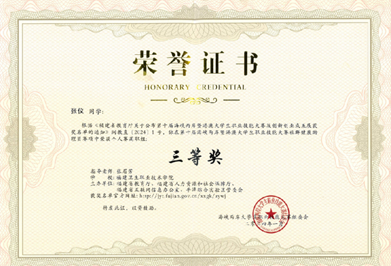 第十屆海峽兩岸暨港澳大學(xué)生職業(yè)技能大賽社群健康助理員三等獎(jiǎng)