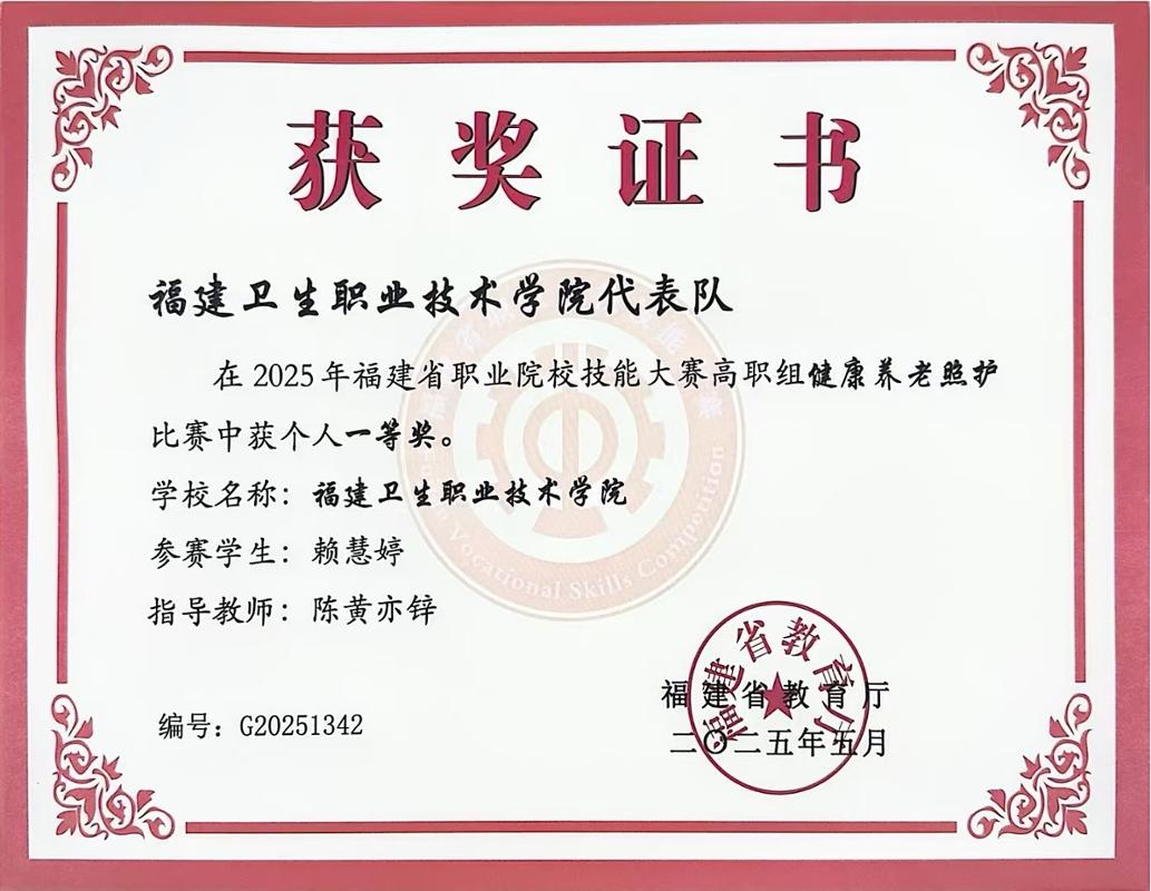 獲福建省職業(yè)院校技能大賽健康與社會(huì)照護(hù)賽項(xiàng),二等獎(jiǎng)2項(xiàng) |