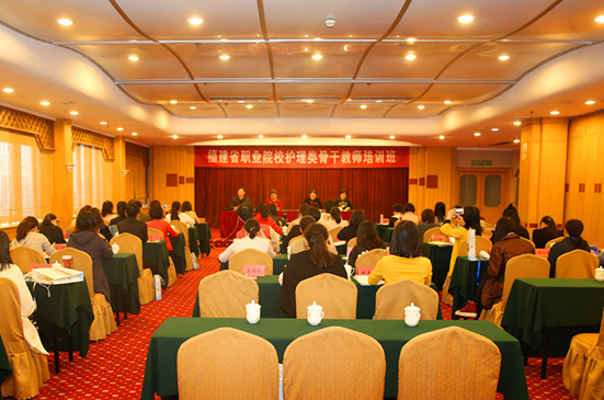 2017年學(xué)院被列為福建省職業(yè)院校護(hù)理類職教師資培訓(xùn)基地,根據(jù)《福建省教育廳辦公室關(guān)于下達(dá)2017年職業(yè)教育省級(jí)培訓(xùn)計(jì)劃的通知》(閩教辦師〔2017〕44號(hào))和《關(guān)于做好2017年度職業(yè)教育省級(jí)培訓(xùn)計(jì)劃調(diào)訓(xùn)工作的通知》(閩教院〔2017〕289號(hào))要求,學(xué)院積極做好前期籌備工作,2018年3月26日上午,福建省職業(yè)院校護(hù)理類骨干教師培訓(xùn)班正式開班,來自14所省內(nèi)中高職院校50名教師參加本次培訓(xùn)。中華護(hù)理雜志社社長(zhǎng)、福建省護(hù)理學(xué)會(huì)理事長(zhǎng)姜小鷹教授,我院副院長(zhǎng)鄭翠紅教授以及人事處、護(hù)理系負(fù)責(zé)人參加了開班儀式。