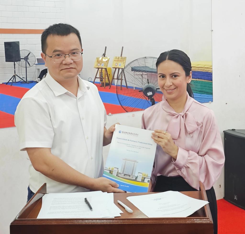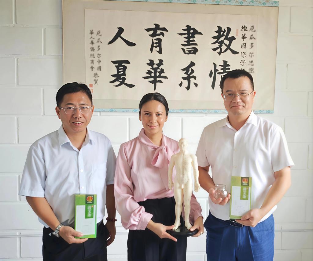 福建衛(wèi)生職業(yè)技術(shù)學(xué)院代表團(tuán)還向厄方院校輸出《中醫(yī)康復(fù)技術(shù)專(zhuān)業(yè)教學(xué)標(biāo)準(zhǔn)》《中藥學(xué)專(zhuān)業(yè)教學(xué)標(biāo)準(zhǔn)》,助力中國(guó)職教標(biāo)準(zhǔn)與厄方教學(xué)實(shí)際有效銜接。實(shí)地調(diào)研思邈維華國(guó)際學(xué)校附屬診所,并向該診所捐贈(zèng)診療教學(xué)器材。儀式期間,教師團(tuán)隊(duì)還與“厄瓜多爾海絲學(xué)院”首屆擬錄取的中醫(yī)康復(fù)專(zhuān)業(yè)學(xué)生座談,對(duì)他們表示熱烈歡迎,期待他們?cè)谥卸騼蓢?guó)的聯(lián)合培養(yǎng)下掌握中醫(yī)藥適宜技術(shù),與在厄中資企業(yè)共同為厄瓜多爾人民提供優(yōu)質(zhì)特色的中醫(yī)藥診療服務(wù)。