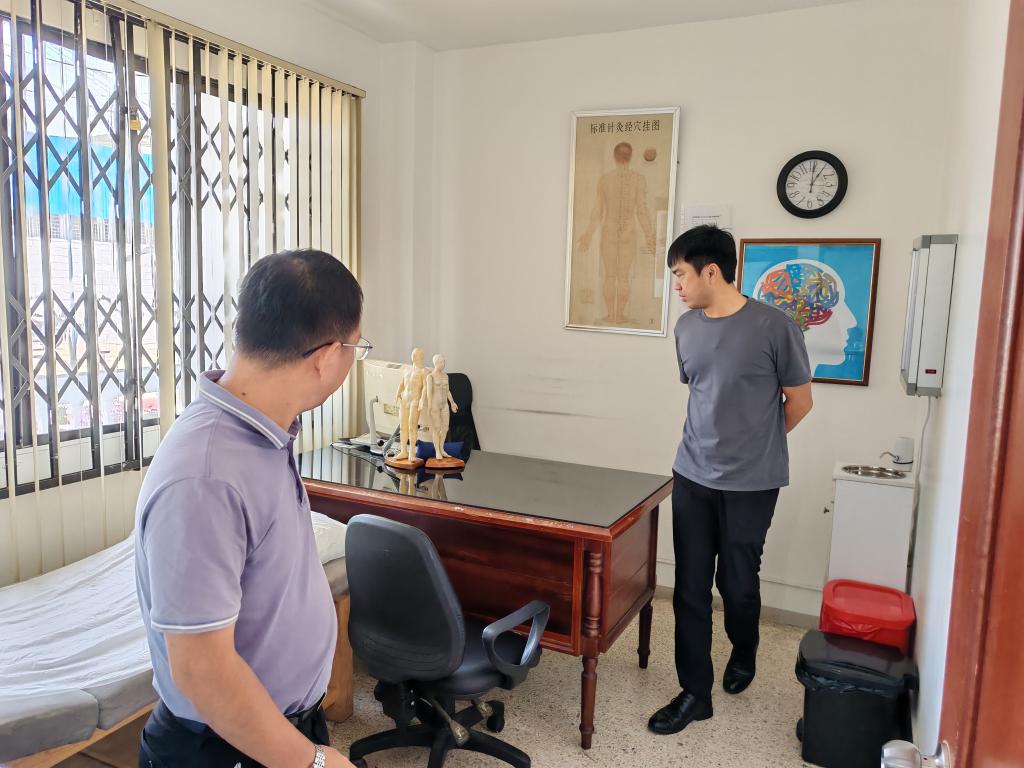 代表團同步走訪東方中醫(yī)診所,調(diào)研運營與功能布局,了解診療流程、藥材使用等情況,對診所技術操作規(guī)范、設備設施擺放問題提出建議,雙方商定后期共同促進中醫(yī)診所的規(guī)范運營。代表團向診所輸出《中醫(yī)康復技術專業(yè)教學標準》《中藥學專業(yè)教學標準》,同時捐贈針灸包、理療儀等器械。教師還現(xiàn)場示范針灸推拿技法,解答臨床難題,提升診所團隊專業(yè)能力。