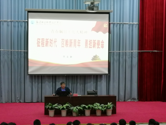 蘇院長結(jié)合自身的親身經(jīng)歷從十九大報告精神要義的“十一個新”、新時代-我國發(fā)展歷史新方位、新青年-牢固樹立潮流新思想、新作為-接力奮斗堪當新使命四個方面進行了具體而生動的闡述,授課內(nèi)容既有對黨的路線方針政策的解讀,又有對我國社會發(fā)展形勢的分析,也有對同學(xué)們樹立正確的學(xué)業(yè)觀及就業(yè)觀的具體指導(dǎo)。蘇院長指出,十九大報告中對青年人寄予了期望與重托:“青年興則國家興,青年強則國家強。青年一代有理想、有本領(lǐng)、有擔當,國家就有前途,民族就有希望。”他要求臨床系廣大青年學(xué)子要牢記使命與擔當,領(lǐng)會十九大報告精神,明確發(fā)展方向,既要志存高遠,將成為新時代中國特色社會主義事業(yè)的合格建設(shè)者和可靠接班人作為個人的理想信念,又要腳踏實地鍛煉扎實的本領(lǐng),以時不我待、只爭朝夕的精神和踏實肯干的態(tài)度,在實現(xiàn)中國夢的新時代放飛青春夢想。