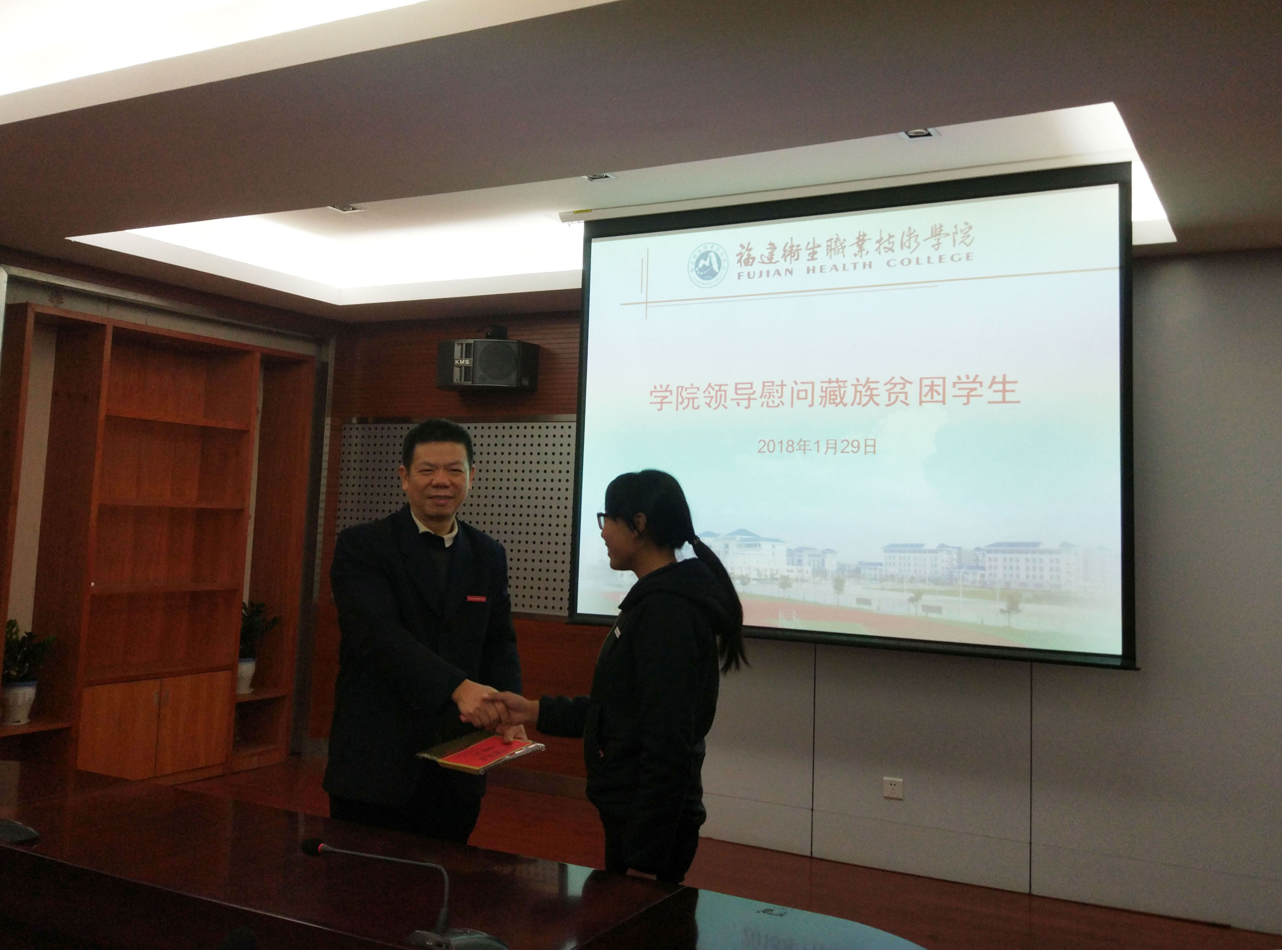 寒假將至,為了貫徹黨的十九大精神,把黨和國家對家庭經濟困難學生的關懷落實落細,把學生資助工作做“暖心”,確保家庭經濟困難學生度過一個溫暖祥和的春節(jié),1月29日,學工處(學院資助中心)在行政樓四樓會議室舉辦“冬季送溫暖”系列活動之——慰問藏族貧困學生活動。學院黨委副書記林建團代表學院熱情慰問了西藏學生彭瓊和南桌。