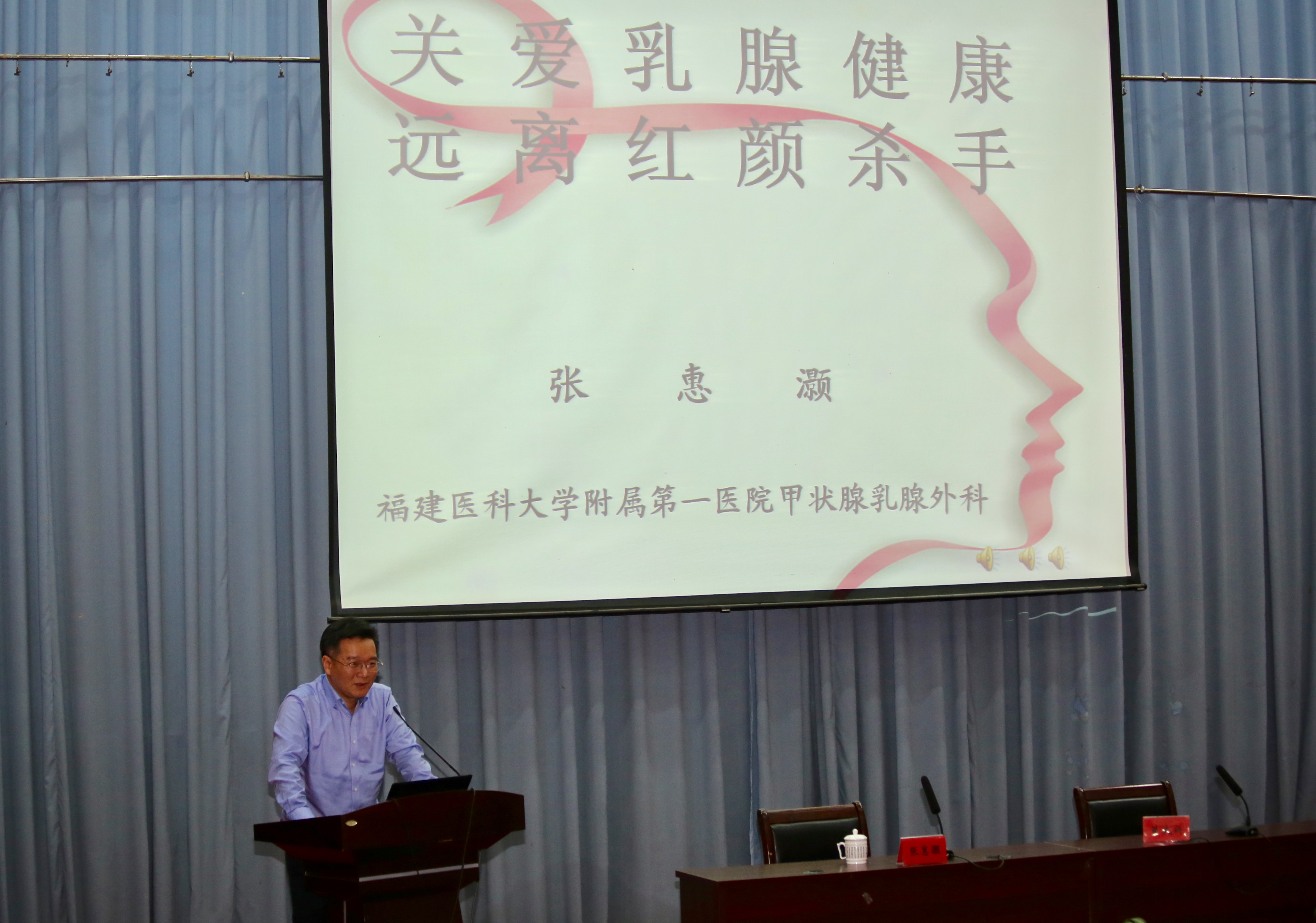 3月8日下午,福建醫(yī)科大學附一醫(yī)院甲狀腺乳腺外科張惠灝副主任應邀來校為我院全體女職工和部分學生作題為《呵護乳腺健康 遠離紅顏殺手》的“三八”節(jié)專題健康講座。 張主任是我省知名的乳腺病專家,兼中國腫瘤防治聯盟福建省乳腺癌專委會常委、母乳喂養(yǎng)與乳腺健康協會專委會秘書長等多項業(yè)務職務,還是中國女性腫瘤預防基金預防大使。張主任講座內容豐富、形象生動、深入淺出,受到了師生熱烈歡迎。