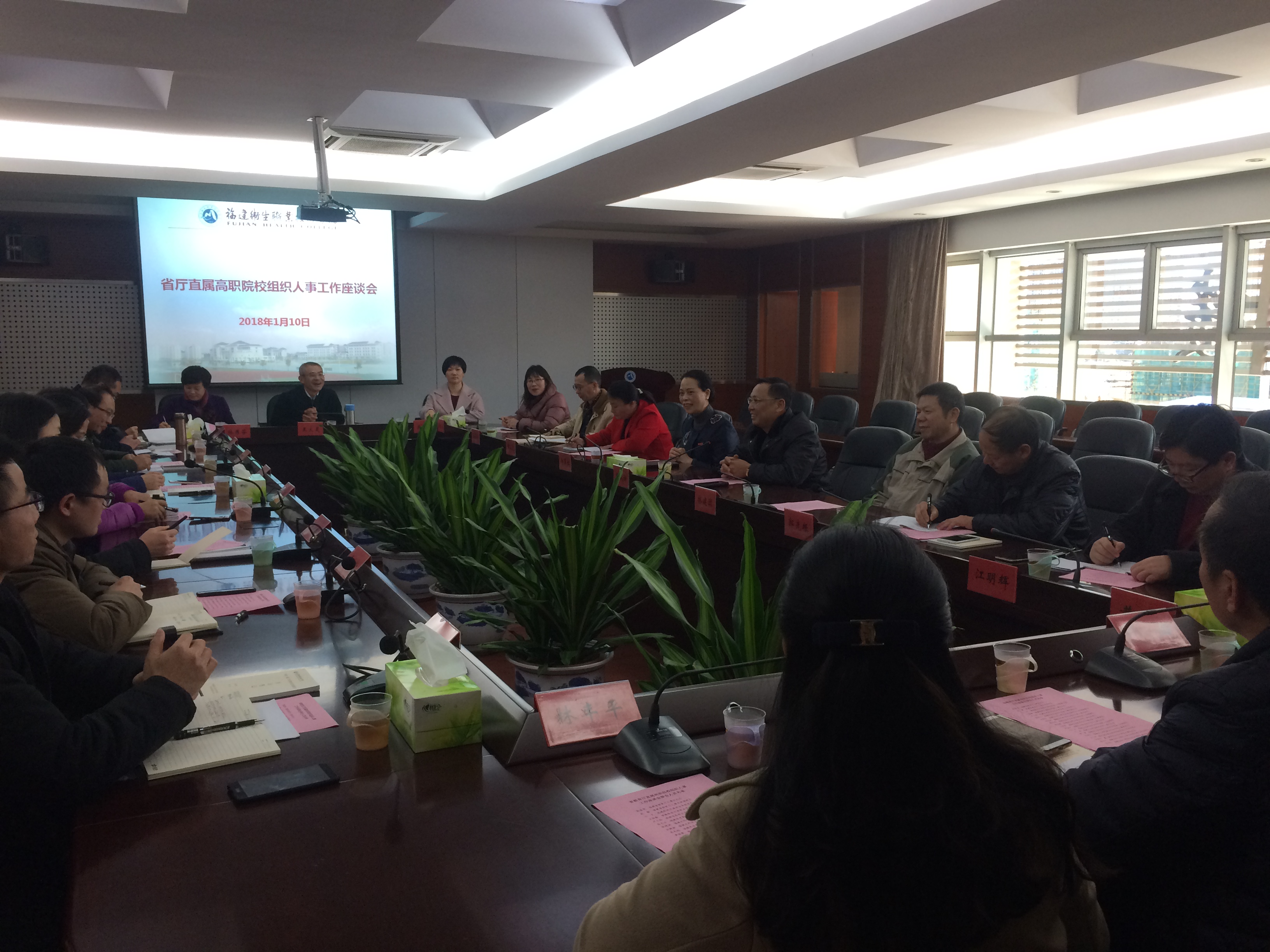 1月10日下午,福建省教育廳直屬高職院校組織人事工作座談會(huì)在我院行政樓四樓第一會(huì)議室舉行。省教育廳人事處處長(zhǎng)陳麗英、副調(diào)研員胡靜蒞臨指導(dǎo),福建船政交通職業(yè)學(xué)院、福建信息職業(yè)技術(shù)學(xué)院、福建水利電力職業(yè)技術(shù)學(xué)院、福建林業(yè)職業(yè)技術(shù)學(xué)院、福建農(nóng)業(yè)職業(yè)技術(shù)學(xué)院、福建衛(wèi)生職業(yè)技術(shù)學(xué)院、福建幼兒師范高等??茖W(xué)校、廈門海洋職業(yè)技術(shù)學(xué)院、福建生物工程職業(yè)技術(shù)學(xué)院等9所省教育廳直屬高職院校黨委工作部及人事處負(fù)責(zé)人參加座談會(huì)。我院在家領(lǐng)導(dǎo)曾武祈書記、林建團(tuán)副書記、鄭翠紅副院長(zhǎng)出席會(huì)議。