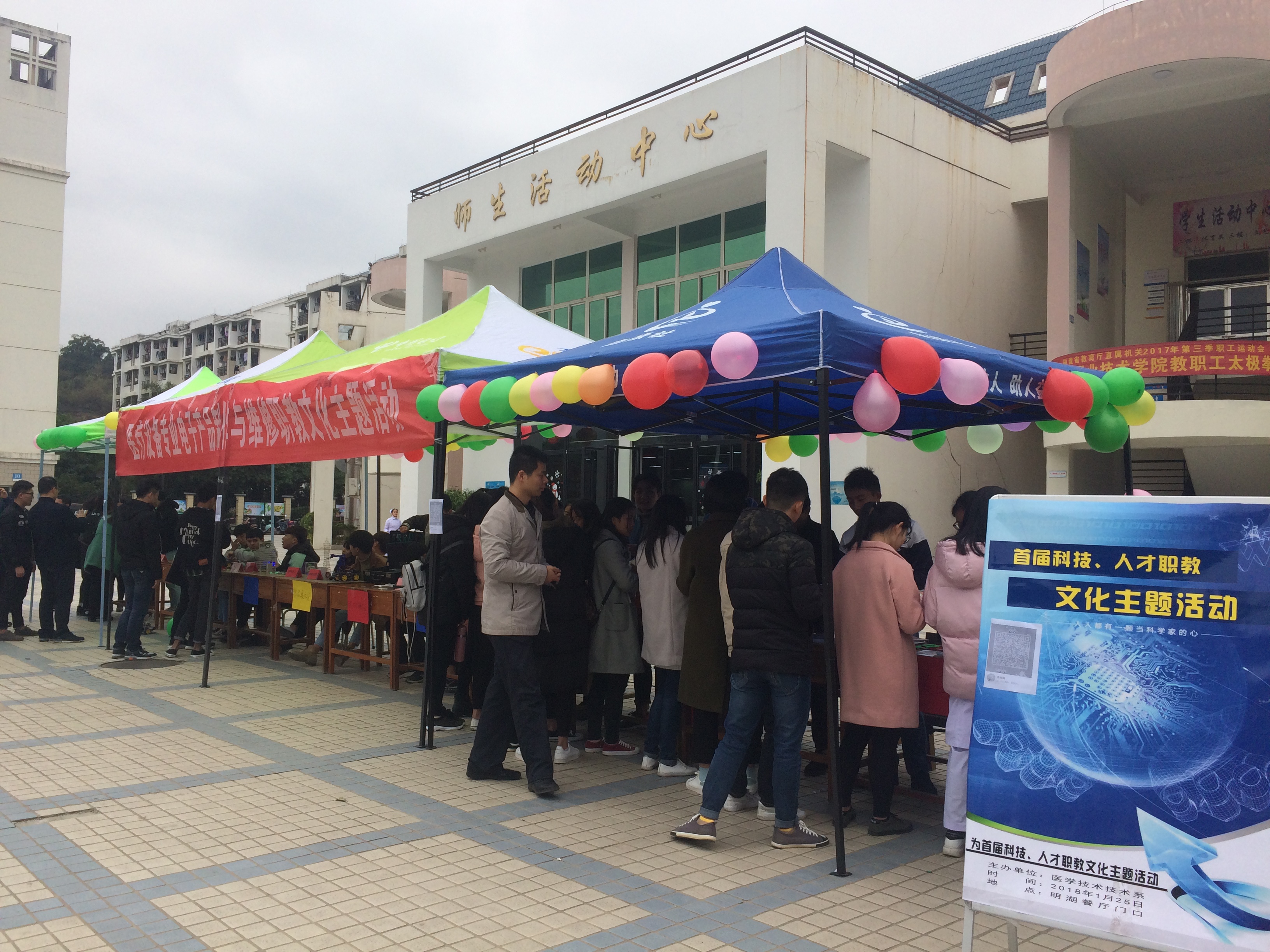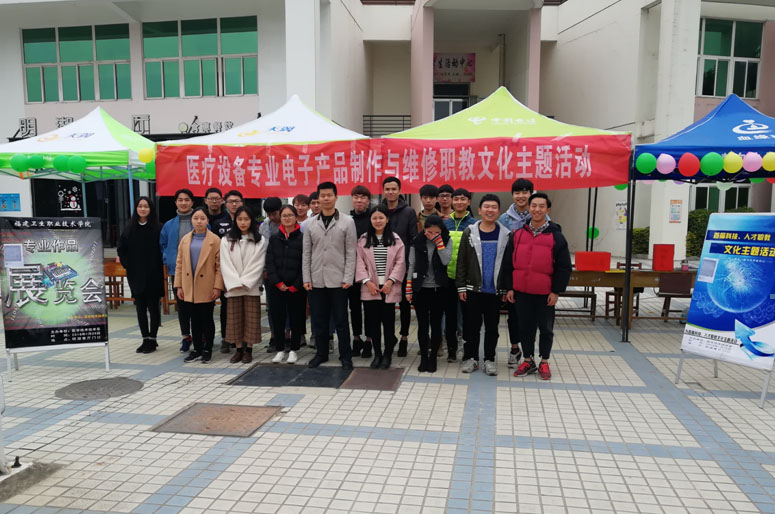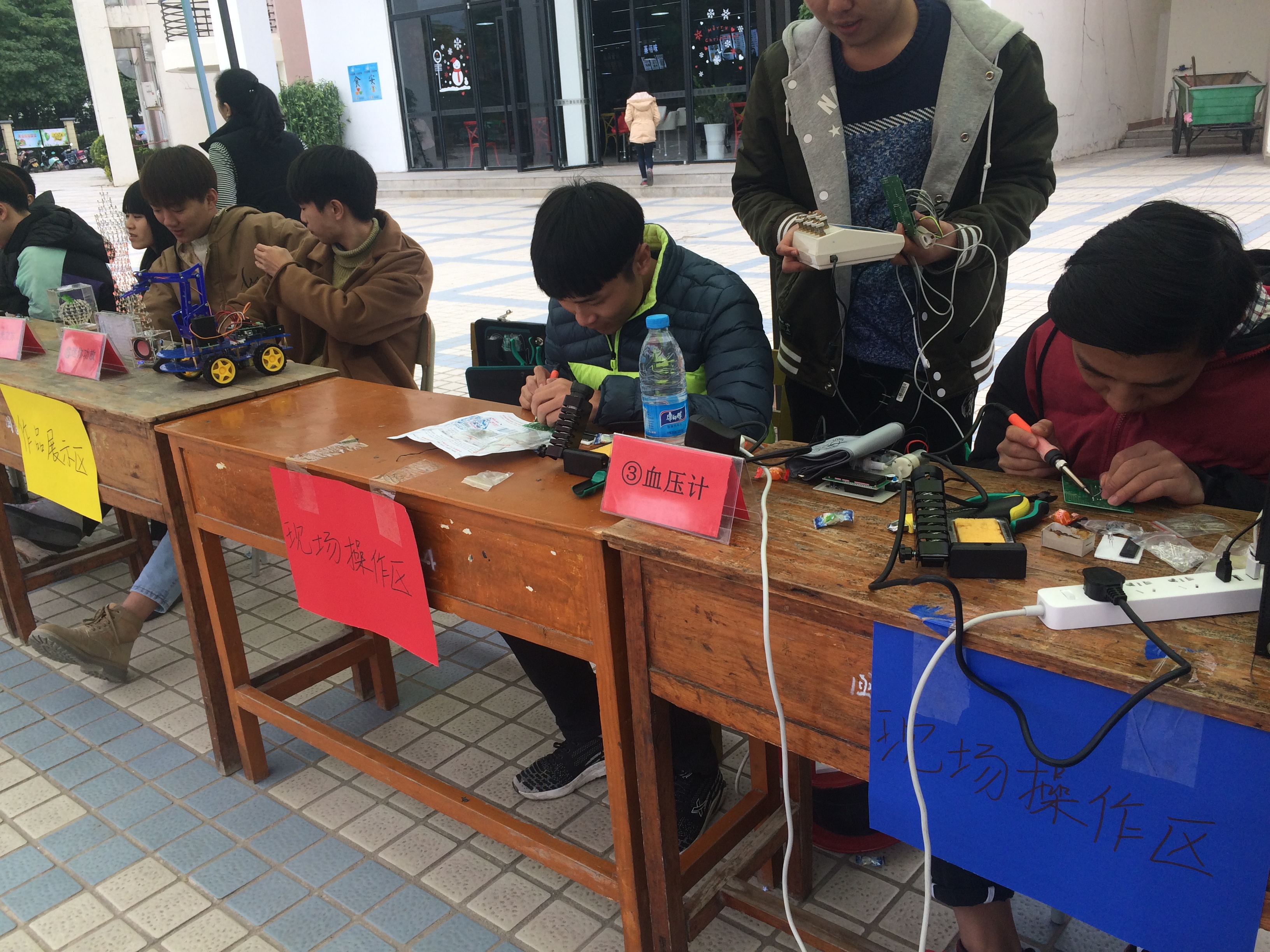 為深入貫徹落實十九大精神,推動“兩學(xué)一做”教育活動常態(tài)化和制度化,弘揚“大眾創(chuàng)業(yè),萬眾創(chuàng)新”的時代風(fēng)尚,充分發(fā)揮我系醫(yī)療設(shè)備應(yīng)用技術(shù)專業(yè)的特長和優(yōu)勢,展現(xiàn)“工匠精神”,在學(xué)院和系部領(lǐng)導(dǎo)的關(guān)心和大力支持下, 1月25日上午11時至下午14時,醫(yī)學(xué)技術(shù)系醫(yī)療設(shè)備專業(yè)的教師黨員和全體學(xué)生在明湖餐廳門前廣場開展了以“醫(yī)療家用電子產(chǎn)品制作與維修”為主題的職教文化活動。