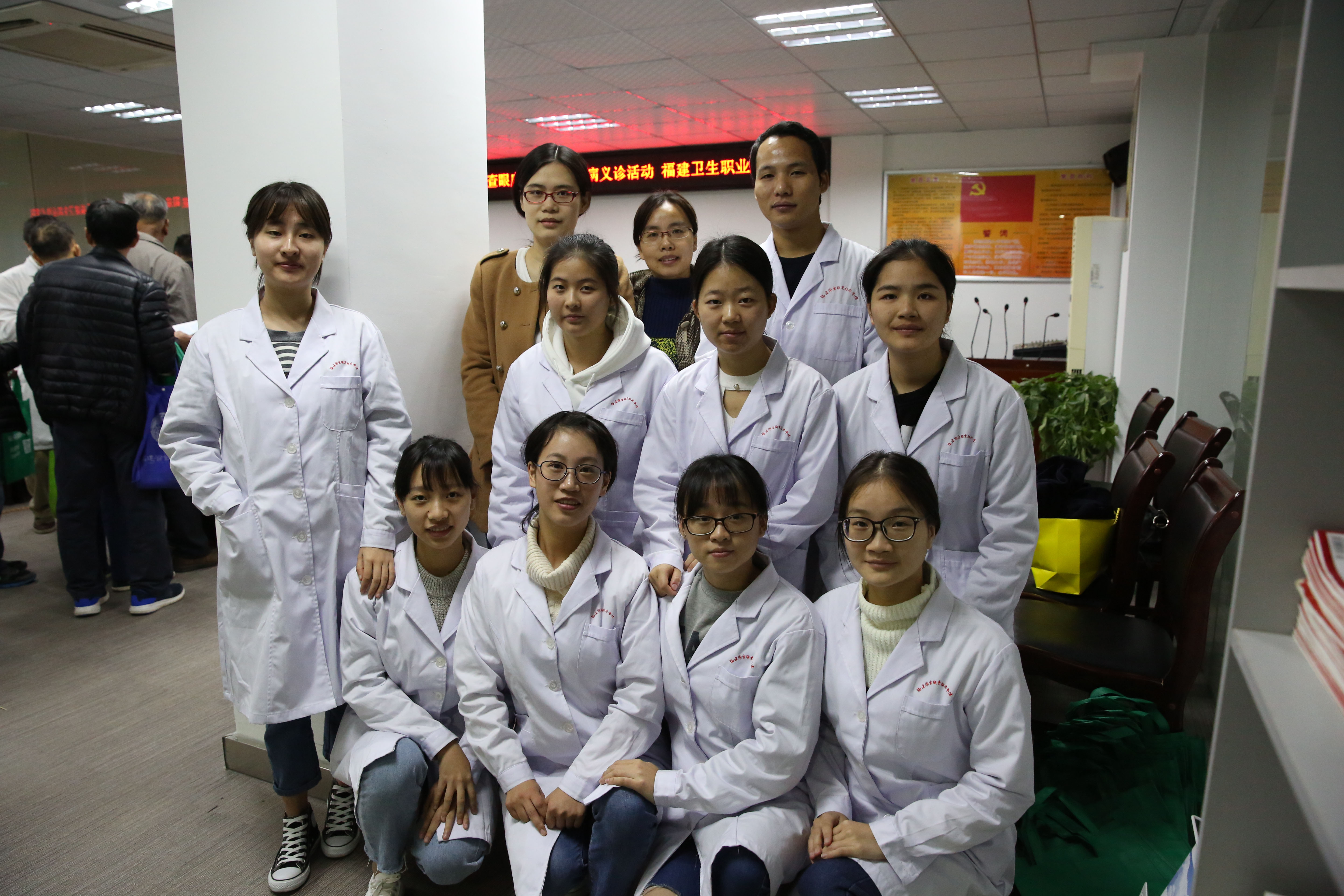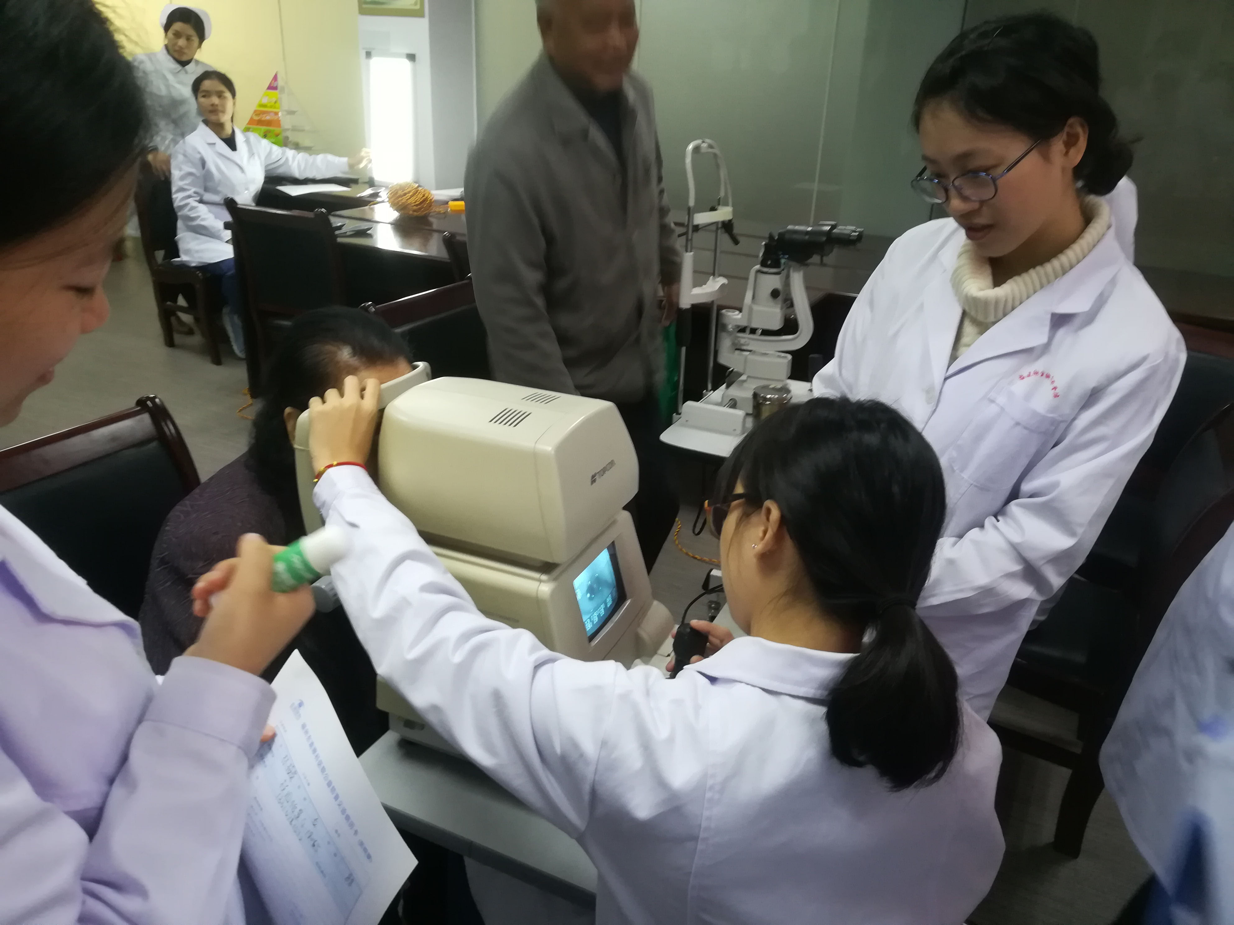 為大力踐行十九大精神,培育和宣傳社會主義核心價值觀,大力弘揚“精益求精,注重細節(jié),精致專一”的工匠精神和“奉獻、友愛、互助、進步”的志愿服務精神,展現我院眼視光技術專業(yè)校企合作的成果,推進“兩學一做”學習教育活動常態(tài)化制度化,2017年12月7日上午,醫(yī)學技術系眼視光技術專業(yè)3名教師黨員帶領8名學生入黨積極分子聯合福州東南眼科醫(yī)院走進鰲峰社區(qū)服務中心開展主題為“踐行十九大,定期查眼底,控制糖網病”的職業(yè)教育活動暨黨日活動。