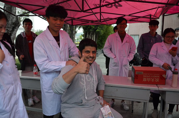 福建警察學(xué)院法律系的王琦老師帶領(lǐng)同學(xué)們領(lǐng)略了警院的風(fēng)光,隨后同學(xué)們來到了模擬法庭,通過最真實的模擬庭審讓同學(xué)們身臨其境地了解到有關(guān)法律法規(guī),具有較強的普法意義。與此同時,職教宣傳的活動正如火如荼地進行,我院康健俱樂部、專業(yè)應(yīng)用與實踐協(xié)會、團員先鋒隊為警院的同學(xué)們帶去了保健按摩、拔罐、血型檢驗、血壓測量等義診項目,徐麗鶯老師與王欽敏老師通過現(xiàn)場示教的方式,讓警院的師生們感受到耳穴療法的魅力,活動現(xiàn)場十分火爆,吸引了警院沙特班同學(xué)的圍觀。宣講活動后,我院臨床系代表隊與警察學(xué)院法律二隊進行了籃球友誼賽,球員們在賽場上努力拼搏,通過籃球賽拉近了距離,增進了友誼。
