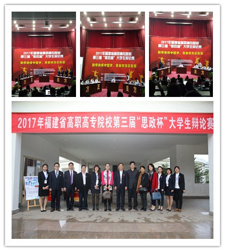 由福建省高校思想政治理論課教學(xué)指導(dǎo)委員會(huì)、福建省高職高專院校思想政治理論課建設(shè)聯(lián)盟主辦,我院馬克思主義學(xué)院、團(tuán)委承辦的2017年福建省高職高專院校第三屆“思政杯”大學(xué)生辯論賽初賽、半決賽和決賽分別于11月18至19日、12月16日、12月17日在我院學(xué)術(shù)廳舉行。