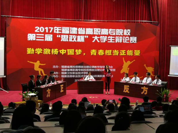 11月18日至19日,由福建省高校思想政治理論課教學(xué)指導(dǎo)委員會、福建省高職高專院校思想政治理論課建設(shè)聯(lián)盟主辦,福建衛(wèi)生職業(yè)技術(shù)學(xué)院馬院、團委承辦的2017年福建省高職高專院校第三屆“思政杯”大學(xué)生辯論賽初賽,在福建衛(wèi)生職業(yè)技術(shù)學(xué)院學(xué)術(shù)廳成功舉行。大賽的主題是“勤學(xué)激揚中國夢,青春擔(dān)當(dāng)正能量”,辯論賽分為初賽、半決賽和決賽三個階段。來自福建中醫(yī)藥大學(xué)的陳惠珍教授、福建師范大學(xué)的俞志教授、吳秋蘭教授、陳新星教授組成強大的評委陣容,他們秉著專業(yè)、認真、公正、負責(zé)的精神對每場比賽進行評分,并且做精彩的點評。