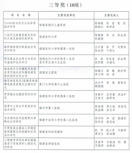 根據(jù)《福建省醫(yī)學(xué)會(huì)關(guān)于表彰福建醫(yī)學(xué)科技獎(jiǎng)獲獎(jiǎng)項(xiàng)目的決定》(閩醫(yī)會(huì)〔2017〕112號(hào))文件通知,我院黃仁杰、肖健等老師為主要完成人的“伏立諾他原料及其膠囊劑的開(kāi)發(fā)”項(xiàng)目喜獲2017年福建省醫(yī)學(xué)科技獎(jiǎng)三等獎(jiǎng)。