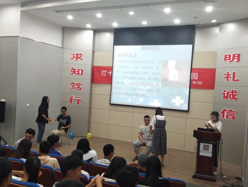 活動(dòng)以觀看動(dòng)漫形式視頻為開端,向藝職院的同學(xué)們普及相關(guān)的健康知識(shí)。青年團(tuán)員朱文文等同學(xué)通過CPR講解、包扎技術(shù)等急救技能現(xiàn)場示范,教會(huì)藝職院同學(xué)們在意外現(xiàn)場的自救和互救技能,真正做到將保護(hù)生命安全與弘揚(yáng)人道奉獻(xiàn)精神有機(jī)融合。