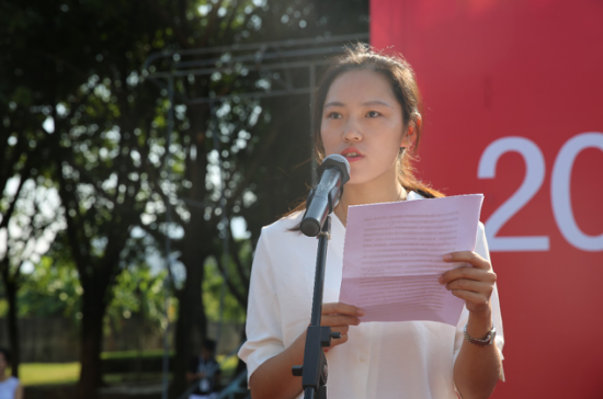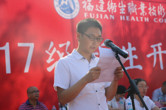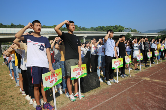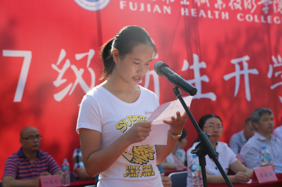 師生代表發(fā)言后,全體新生進(jìn)行了《醫(yī)學(xué)生誓言》的莊嚴(yán)宣誓,由輔導(dǎo)員代表鄭冰老師領(lǐng)誓。