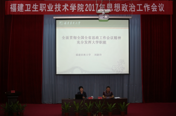 10月14日,我院在學(xué)術(shù)廳召開(kāi)2017年思想政治工作會(huì)議。學(xué)院領(lǐng)導(dǎo)、全體教職員工參加了會(huì)議,福建農(nóng)林大學(xué)馬克思主義學(xué)院院長(zhǎng)劉新玲應(yīng)邀為我院教職員工開(kāi)展講座。會(huì)議由學(xué)院黨委副書記林建團(tuán)主持。