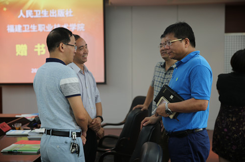 首先,與會人員通過宣傳片詳細了解了人民衛(wèi)生出版社近年的發(fā)展戰(zhàn)略及服務醫(yī)學人才培養(yǎng)的理念。接著,蘇友新院長代表學院介紹了我院近年來的發(fā)展情況和在教材建設方面的工作,蘇院長對人民衛(wèi)生出版社長期以來給予的支持表示感謝,希望通過此次調研活動,進一步加強合作,進一步推動我院教材建設,培育創(chuàng)新和特色教材。會上,人民衛(wèi)生出版社黨委徐景蘭副書記闡述了國內現(xiàn)階段高職高專教材建設的特點,醫(yī)學教育中心職業(yè)教育部裴中惠編輯介紹了信息化背景下職教教材建設的變革,市場營銷中心區(qū)域數(shù)字產(chǎn)品經(jīng)理賈曉娜圍繞人衛(wèi)社數(shù)字出版實踐,提出傳統(tǒng)媒體和新興媒體如何融合的問題。此次會中還舉行了贈書儀式,蘇友新院長代表學院接收了人民衛(wèi)生出版社捐贈的五萬元圖書。