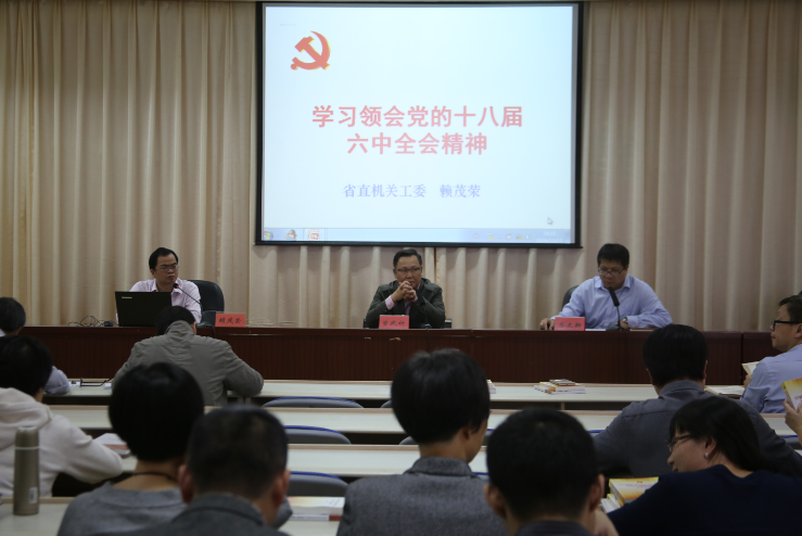 11月21日下午,我院邀請省直機關(guān)工委講師團團長賴茂榮為學(xué)院黨委學(xué)習(xí)中心組、院直機關(guān)黨員作學(xué)習(xí)領(lǐng)會黨的十八屆六中全會精神專題輔導(dǎo)。學(xué)習(xí)會議由學(xué)院黨委副書記、院長蘇友新主持。