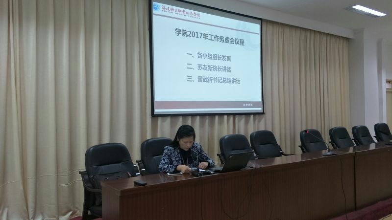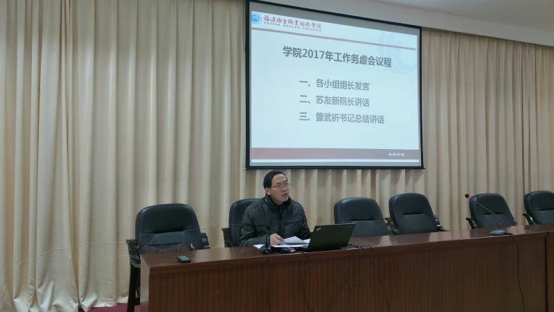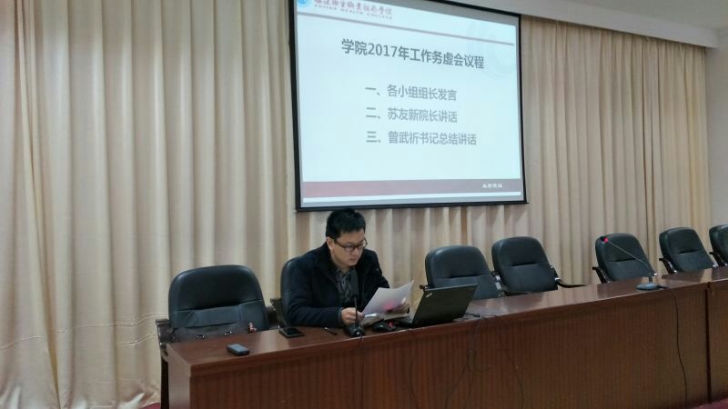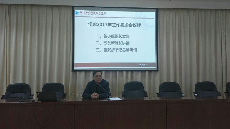 2017年1月16日,我院召開2017年學(xué)院工作務(wù)虛會,會議主要圍繞學(xué)院發(fā)展方向、內(nèi)涵建設(shè)、科學(xué)治理體系構(gòu)建等方面展開討論。全體院領(lǐng)導(dǎo),各黨總支、處室、系部、館、中心負(fù)責(zé)人以及部分教研室主任、教師、輔導(dǎo)員、教代會代表參加了會議。