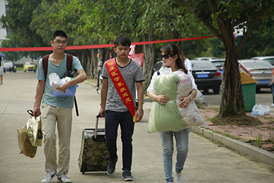 為保證新生順利入學(xué),學(xué)院進行了全面部署和安排,各部門緊張有序投入工作。在火車站、長途汽車站、公交中轉(zhuǎn)站、校門口等地點分別設(shè)立迎新接待站,為新生及家長們提供便利引導(dǎo)服務(wù)。校內(nèi)設(shè)立了新生咨詢處,各系部分別集中設(shè)置報到處,使新生能在最短的時間內(nèi)辦理完報到手續(xù)。此外,還專門為家境貧困的學(xué)生開放“綠色通道”,辦理助學(xué)貸款和緩交學(xué)費手續(xù)。學(xué)院微信公眾號、團委微信公眾號、易班等新媒體提前編發(fā)了迎新???,方便廣大新生和家長更為迅捷的了解學(xué)院和系部情況,查看入學(xué)指南,起到了良好的作用;道路兩旁醒目位置都設(shè)置有迎新指示牌,各校園路口,各系部的志愿者高舉著迎新牌,用微笑向新生和家長問好。當(dāng)新生初至校門口,迎新志愿者們便接過他們的背包,將新生們帶至系部報到處,將新生們內(nèi)心的焦慮感一掃而空。這些熱情而忙碌的身影,成為迎新現(xiàn)場的一道美麗的風(fēng)景線,帶給了學(xué)弟學(xué)妹們一份親切感和溫暖。