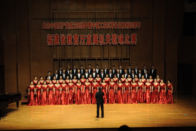 由省教育廳主辦、教育廳直屬機(jī)關(guān)委員會和省合唱協(xié)會承辦的“紀(jì)念中國共產(chǎn)黨成立95周年暨紅軍長征勝利80周年”歌詠比賽于6月26日在福建大劇院音樂廳舉行。教育廳機(jī)關(guān)和廳直單位共21支代表隊(合唱團(tuán))參加了比賽,我院教工合唱團(tuán)演唱的《憶秦娥·婁山關(guān)》榮獲一等獎。