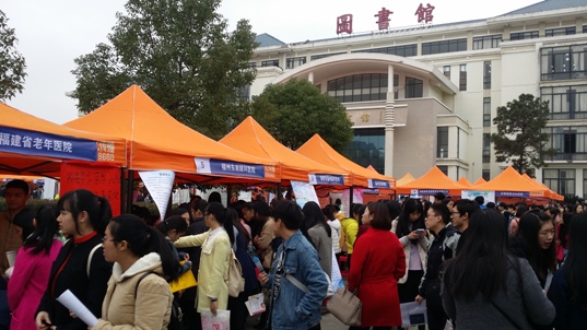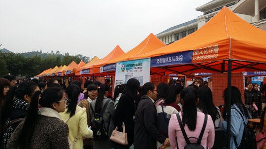 1月9日上午,福建衛(wèi)生職業(yè)技術(shù)學(xué)院2016屆畢業(yè)生供需見面會在校園圖書館前廣場舉行,吸引了全省各地147家醫(yī)藥衛(wèi)生單位參加,提供就業(yè)崗位3000多個。招聘會現(xiàn)場氣氛濃烈,人頭攢動,多家衛(wèi)生醫(yī)療單位、醫(yī)藥企業(yè)擠滿了咨詢的畢業(yè)生,用人單位也根據(jù)需求,閱覽畢業(yè)生簡歷,與畢業(yè)生親切交流、吸引人才。學(xué)院黨委書記林春明、副院長魏立娜親臨招聘會現(xiàn)場,與企業(yè)相關(guān)負(fù)責(zé)人親切交流,了解用人單位需求,各系部黨總支書記和畢業(yè)生輔導(dǎo)員到現(xiàn)場與用人單位接洽溝通,為畢業(yè)生應(yīng)聘提供指導(dǎo)和服務(wù)。福建教育電視臺和海峽都市報(bào)對本次招聘會情況進(jìn)行了報(bào)道。