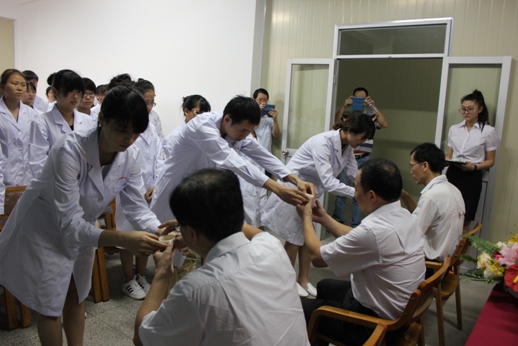 其后進行了傳統(tǒng)的“拜師儀式”, 30名學生效法古代弟子拜師禮節(jié),向同春的師傅們行拜師禮,奉敬師茶;師傅們接過學生遞上的茶水,啜飲以示收下弟子。待拜師之禮完畢后,師傅代表趙峰總監(jiān)向新收的弟子們講述了中藥行業(yè)的行規(guī)與道德規(guī)范,明確提出“做藥就是做良心,講藥就是講誠信”,希望同學們緊守職業(yè)道德規(guī)范,做一個合格優(yōu)秀的的中藥人。