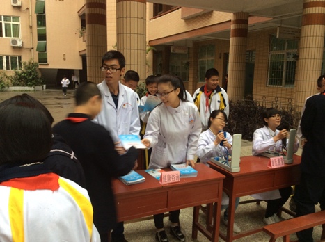 在急救技能培訓的同時,我院志愿者還在十五中教學樓下,開展了健康咨詢和義診活動,內容包括了安全用藥知識普及、測量血壓血型、分發(fā)健康宣傳手冊等,還開設了以“口腔保健”、“常用藥品使用”、“燒傷診療”為主題的三個小講堂。整場活動氛圍熱烈,獲得了在場師生的歡迎和好評。