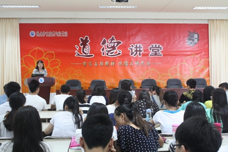 為了貫徹落實(shí)黨的十八大精神,加強(qiáng)社會(huì)主義核心價(jià)值體系建設(shè),提升師生的道德素質(zhì),促進(jìn)精神文明建設(shè),共建和諧校園,實(shí)現(xiàn)學(xué)生全面發(fā)展。公共基礎(chǔ)部于6月17日上午在行政樓六樓舉辦了以“引領(lǐng)道德新風(fēng)尚,傳遞青春正能量”主題的道德講堂活動(dòng)。學(xué)院黨委書記林春明、黨委工作部董榕部長(zhǎng)、系部熊美蘭主任、洪聿榮書記、部分教師以及全體同學(xué)參加了本次活動(dòng)。