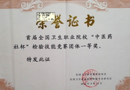 2014年5月30日至31日由全國(guó)衛(wèi)生職業(yè)教育研究會(huì)和全國(guó)衛(wèi)生職業(yè)教育檢驗(yàn)專業(yè)研究會(huì)主辦的首屆全國(guó)衛(wèi)生職業(yè)院校“中醫(yī)藥社杯”檢驗(yàn)技能競(jìng)賽在西安市衛(wèi)生學(xué)校隆重舉行。我院醫(yī)學(xué)技術(shù)系代表隊(duì)參加了高職組的競(jìng)賽,并喜獲高職組團(tuán)體一等獎(jiǎng)。