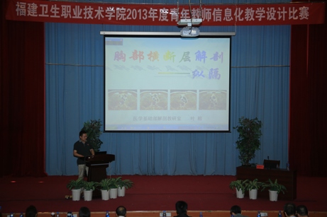 2013年7月1日,2013年青年教師信息化教學(xué)設(shè)計比賽在學(xué)術(shù)報告廳舉行。此次青年教師信息化教學(xué)設(shè)計比賽共有來自各個系部的18位老師參賽,比賽重點考核老師的教學(xué)設(shè)計能力,特別是運用信息技術(shù)突出教學(xué)重點、突破教學(xué)難點或者完成特定教學(xué)任務(wù)的能力。參賽者現(xiàn)場展示了自主制作的多媒體教學(xué)課件,并就信息技術(shù)在教學(xué)中的運用和預(yù)期效果進(jìn)行講解。比賽評審委員會從教學(xué)設(shè)計、內(nèi)容呈現(xiàn)、技術(shù)應(yīng)用、創(chuàng)新與實用等方面對各位選手的講解進(jìn)行評比,共評選出一等獎一名,二等獎三名、三等獎五名。賽后,醫(yī)基部陳玲瓏教授和教務(wù)處朱扶蓉處長還分別對各個選手的特色進(jìn)行精彩的點評,并指出學(xué)院未來教學(xué)建設(shè)重點將在信息化教學(xué)資源建設(shè)、適應(yīng)教育信息化要求的師資隊伍建設(shè)、探索信息化環(huán)境下的教學(xué)新模式構(gòu)建等三個方面加大力度。