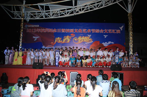 晚上7點,2013年校慶紀(jì)念日暨校園文化藝術(shù)節(jié)綜合文藝匯演在明湖音樂廣場隆重舉行,學(xué)院林春明院長、陳雄副書記、黃開良副院長、魏立娜副院長以及各系部黨總支書記、輔導(dǎo)員老師等同千余名同學(xué)齊聚明湖湖畔共同欣賞演出。晚會首先表彰了2013年文化藝術(shù)節(jié)期間各項活動獲獎的個人及集體。在青春洋溢的健身操過后,文藝匯演正式拉開序幕。本次晚會以“青春·夢想”為主題,通過詩歌朗誦《我們的中國夢》、歌舞《Dream》《青春·夢想》、小品《超級夢想秀》等表演生動的表現(xiàn)出閩衛(wèi)院學(xué)子的白衣天使夢。由醫(yī)學(xué)技術(shù)系馬少寧主任表演的歌伴舞《珊瑚頌》,林媛、樓燁、王鈍銳老師朗誦的《百年校慶賦》,邱萍老師表演的舞蹈《水晶之戀》,王燁、林宇老師合唱的《你若盛開》等節(jié)目,把整場晚會推向一個又一個的高潮。在全體演職人員最后的合唱《走向復(fù)興》中,為校慶紀(jì)念日成功的劃上了圓滿句號。(辦公室 教務(wù)處 工會 醫(yī)學(xué)技術(shù)系 團(tuán)委 學(xué)生工作處 黨委工作部)