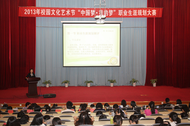 為了在全體學(xué)生中進(jìn)一步宣傳“中國夢(mèng)”主題教育活動(dòng),增進(jìn)在校學(xué)生對(duì)職業(yè)和就業(yè)的認(rèn)識(shí),5月28日我院在學(xué)術(shù)廳舉辦了“2013年校園文化藝術(shù)節(jié)‘中國夢(mèng)·我的夢(mèng)’職業(yè)生涯規(guī)劃大賽”。學(xué)院魏立娜副院長(zhǎng)以及學(xué)生工作處、思政教研部、院團(tuán)委和相關(guān)系部領(lǐng)導(dǎo)出席,各系輔導(dǎo)員和400余名學(xué)生共同觀看了比賽。
