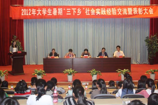 大會(huì)在莊嚴(yán)肅穆的國歌聲中拉開序幕。首先由宋維副書記宣讀社會(huì)實(shí)踐的表彰決定,分別授予社會(huì)實(shí)踐優(yōu)秀集體和個(gè)人、社會(huì)實(shí)踐優(yōu)秀指導(dǎo)老師、社會(huì)實(shí)踐積極分子,社會(huì)實(shí)踐優(yōu)秀調(diào)查報(bào)告等獎(jiǎng)項(xiàng)。隨后各獲獎(jiǎng)代表上臺(tái)領(lǐng)獎(jiǎng),并做匯報(bào)和交流發(fā)言。最后,魏立娜副院長對(duì)進(jìn)行本次大會(huì)作出總結(jié),她指出,我院學(xué)生在實(shí)踐中敢于挑戰(zhàn)自己,綜合素質(zhì)不斷提高,學(xué)院也將會(huì)一如既往地大力支持學(xué)生實(shí)踐活動(dòng),并希望同學(xué)們能在行動(dòng)中迎接十八大召開,樹立和落實(shí)科學(xué)發(fā)展觀,在投身實(shí)踐、服務(wù)社會(huì)中提高自身素質(zhì),提高分析和解決實(shí)際問題的能力,實(shí)現(xiàn)全面發(fā)展。