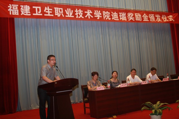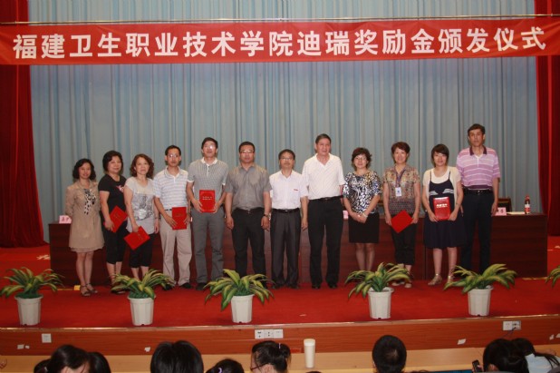 為了更好地提高醫(yī)學(xué)檢驗(yàn)技術(shù)專業(yè)人才培養(yǎng)的質(zhì)量,進(jìn)一步激發(fā)廣大師生努力工作和學(xué)習(xí),實(shí)現(xiàn)校企雙方人才共育、過程共管、資源共建、成果共享、責(zé)任共擔(dān)的緊密型校企合作辦學(xué)機(jī)制,2012年6月13日下午福建衛(wèi)生職業(yè)技術(shù)學(xué)院迪瑞獎(jiǎng)勵(lì)金頒發(fā)儀式在我院學(xué)術(shù)廳隆重舉行。