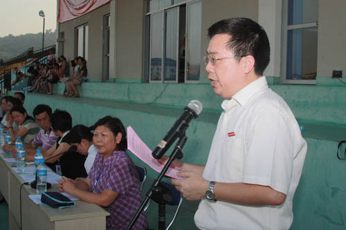 16日下午四點(diǎn),在田徑場(chǎng)舉行了新生開學(xué)典禮暨軍訓(xùn)會(huì)操總結(jié)大會(huì)。學(xué)院嚴(yán)肅書記、林春明院長、陳雄副書記、廖偉堅(jiān)副院長、黃開良副院長、73919部隊(duì)桑立新政委等領(lǐng)導(dǎo)出席了大會(huì),魏立娜副院長主持大會(huì)。新生們用自信的口號(hào)、整齊的動(dòng)作向大家展示了幾天來的訓(xùn)練成果,獲得了在場(chǎng)領(lǐng)導(dǎo)及師生的陣陣掌聲。會(huì)操表演結(jié)束后,大會(huì)宣布了此次軍訓(xùn)獲獎(jiǎng)的集體和個(gè)人,2010級(jí)醫(yī)學(xué)技術(shù)系老生代表和2011級(jí)臨床醫(yī)學(xué)系新生代表做了熱情洋溢的發(fā)言。最后,林春明院長作了總結(jié)講話,首先,他代表學(xué)院黨政領(lǐng)導(dǎo)和全院師生、醫(yī)護(hù)人員歡迎新同學(xué)的到來,感謝73919部隊(duì)教官和學(xué)院輔導(dǎo)員在軍訓(xùn)中所付出辛勤勞動(dòng);其次,肯定了同學(xué)們?cè)诮坦俚闹笇?dǎo)下刻苦訓(xùn)練,比學(xué)趕超,創(chuàng)先爭(zhēng)優(yōu),互幫互助,共同提高,圓滿完成了軍訓(xùn)任務(wù);最后,林院長對(duì)大家提了三點(diǎn)要求和希望:一是轉(zhuǎn)變角色,勤奮學(xué)習(xí),二是牢記校訓(xùn),樹立愛心,三是全面發(fā)展,立志成才。(學(xué)生工作處)